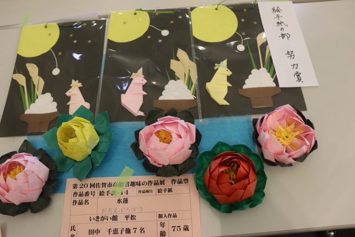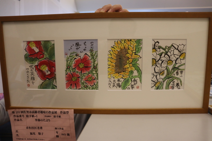 一昨年度より佐賀市からの全面的な委託事業により、佐賀市老連が全面的に実施するもので、今年度は全体で140点(うち老人クラブ会員の出展64件)の作品の出展があった。