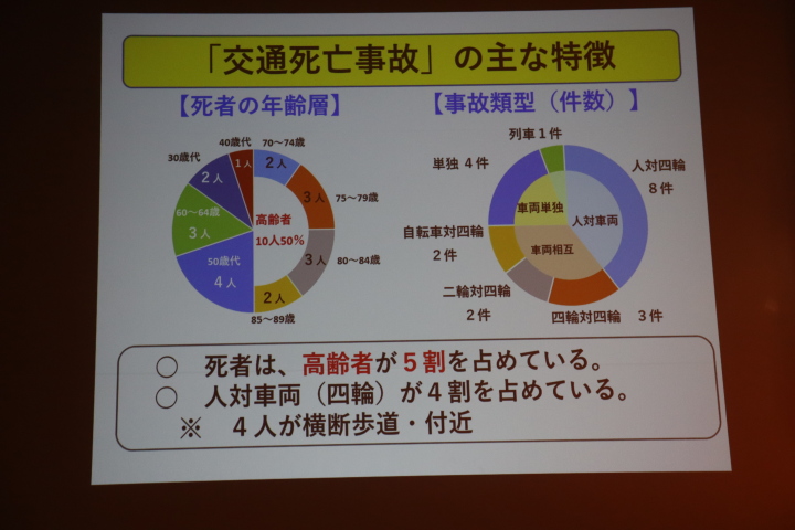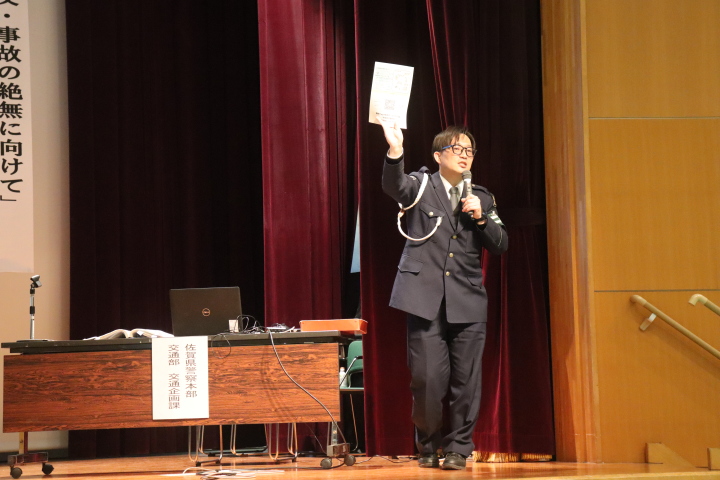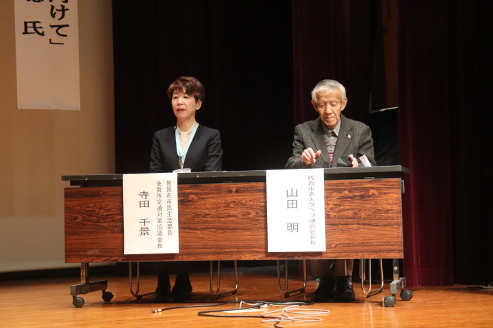 主催者は佐賀市生活安全課で佐賀北警察署より「交通違反・事故の絶無に向けて」と題しての講演があり、佐賀県警察本部交通部企画課より「運転時 の危険予測について」の体験講習があり、交通事故に遭わない・遭わせないことの大事さを痛感し、佐賀市からのお知らせとして、自主返納制度・各種交通系 サービスの紹介・出前講座の案内があった。