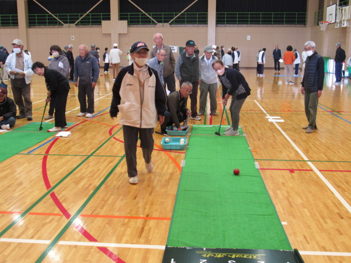ニュースポーツを体験して貰い、校区老連に持ち帰り会員各位にも進めて行って貰いたいと思っています。